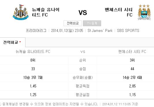 2013-14 잉글랜드 프리미어리그에서 뉴캐슬 vs 맨시티